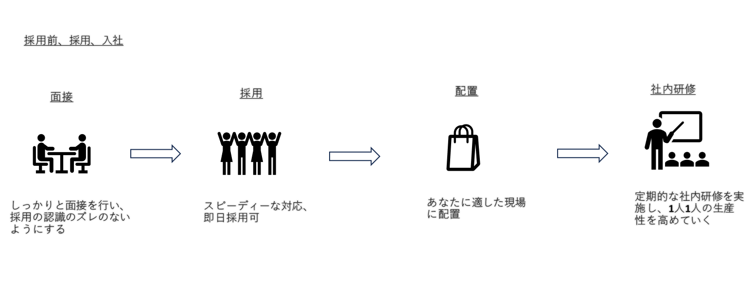 働く男女を対象にし、働く意欲が高い方を積極的に雇用します。